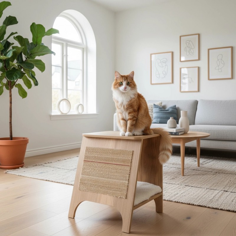 - Funkcja 3w1 – drapak, kryjówka i stolik dekoracyjny