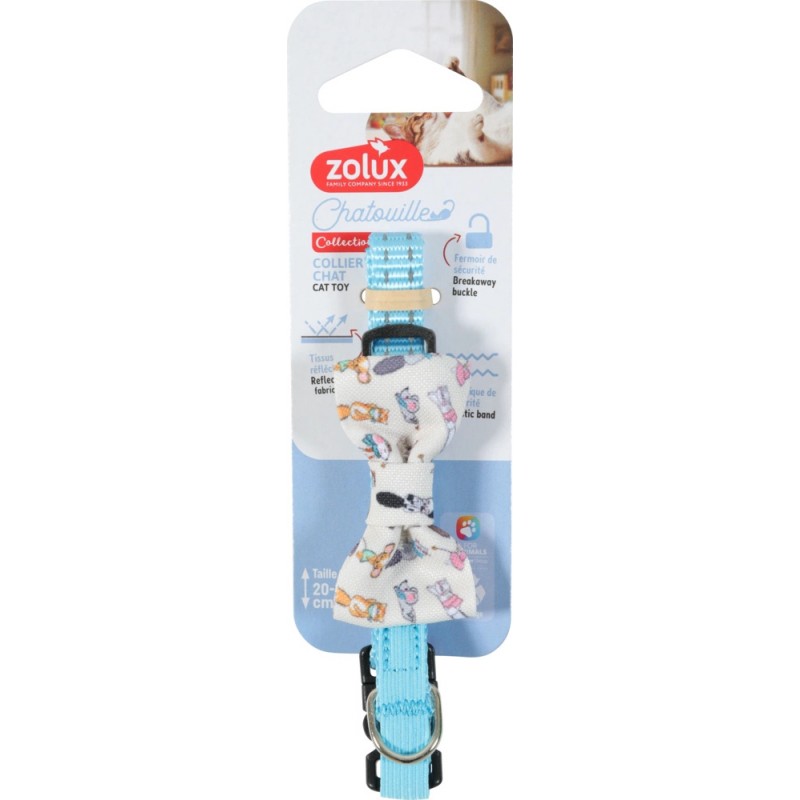 ZOLUX obroża dla kota Chatouille niebieska z muszką – ultralekka i bezpieczna obroża z elastyczną konstrukcją i klamrą bezpieczeństwa.