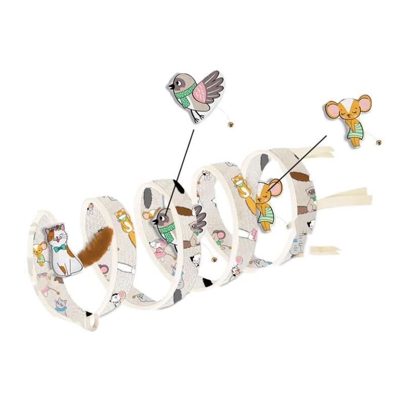 ZOLUX tunel dla kota spirala Chatouille – składany tunel tekstylny dla kota z wzorem kotów i myszy.