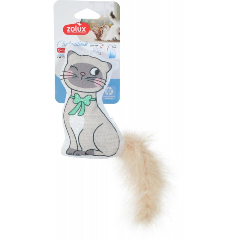 Zabawka dla kota Chatouille w kształcie kota w eleganckiej muszce w groszki to stylowa propozycja od ZOLUX, która łączy wyrafinowany design z funkcjonalnością wspierającą naturalne instynkty łowieckie. Naturalne piórka, kocimiętka oraz ekologiczne materiały sprawiają, że zabawka zapewnia kotu intensywne, wielozmysłowe doznania i długotrwałe zainteresowanie.
