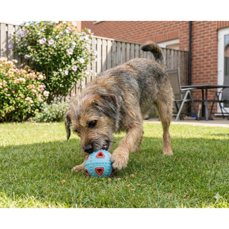 Zastosowana termoplastyczna guma (TPR) jest odporna na gryzienie, nietoksyczna i łatwa do czyszczenia, dzięki czemu zabawka świetnie sprawdza się podczas codziennych zabaw oraz spacerów. Jej struktura zachęca do chwytania i manipulowania, wspierając naturalne potrzeby psa.