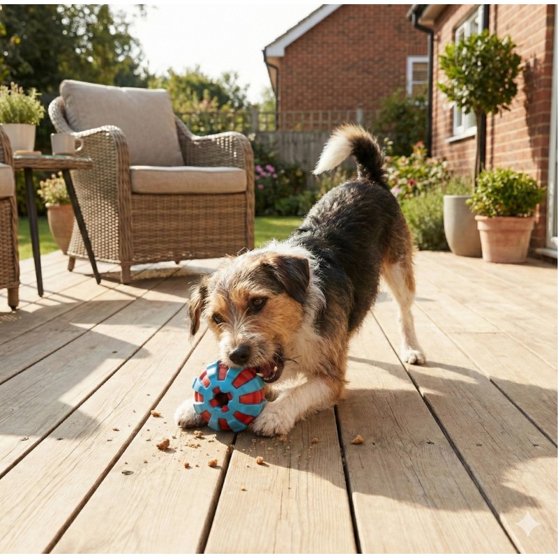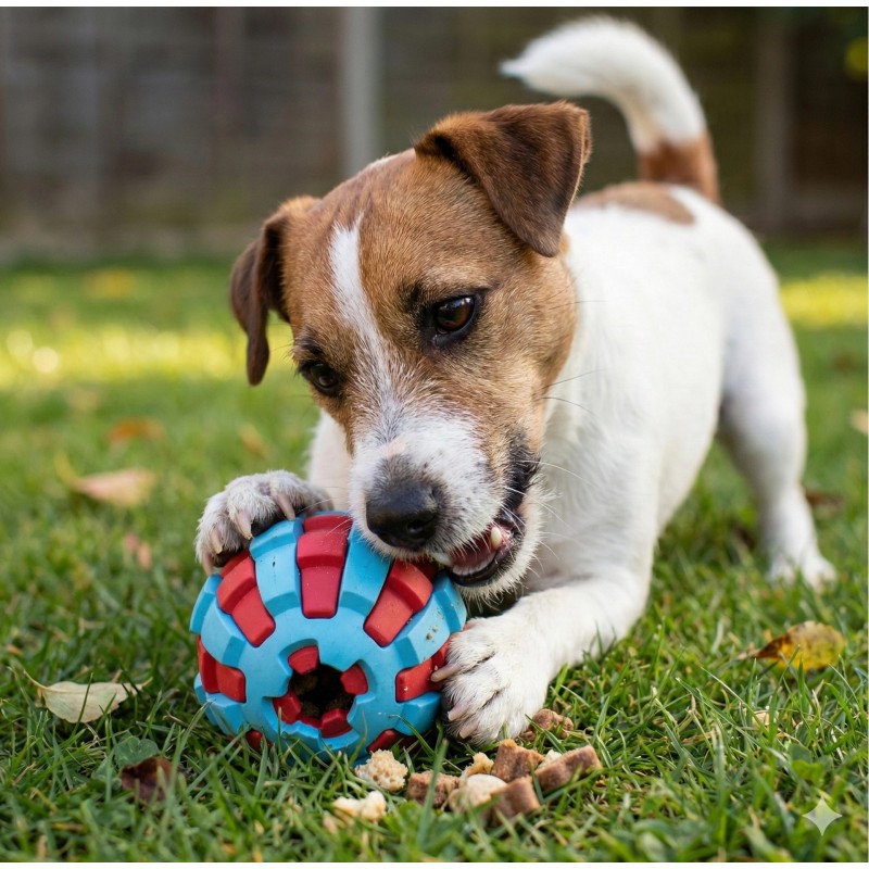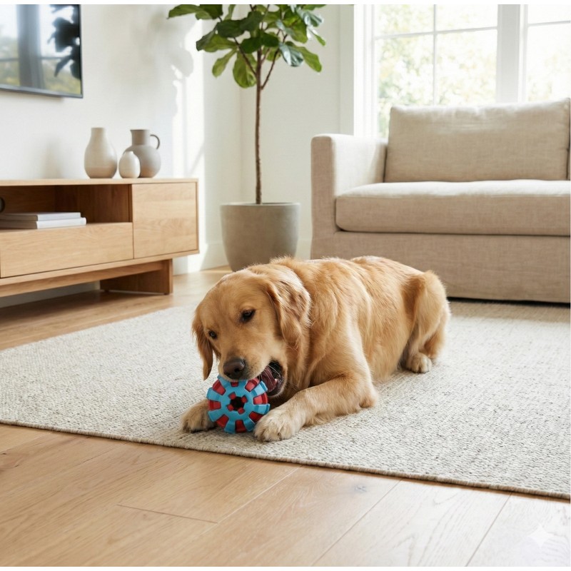 - Funkcja na przysmaki – możliwość wypełnienia wnętrza smakołykami pobudza instynkt poszukiwania i wydłuża czas zabawy.