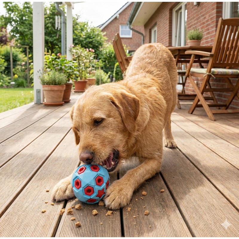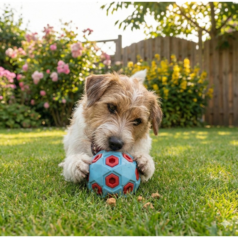 - Kształt piłki – idealny do aportowania, turlania i samodzielnej zabawy.