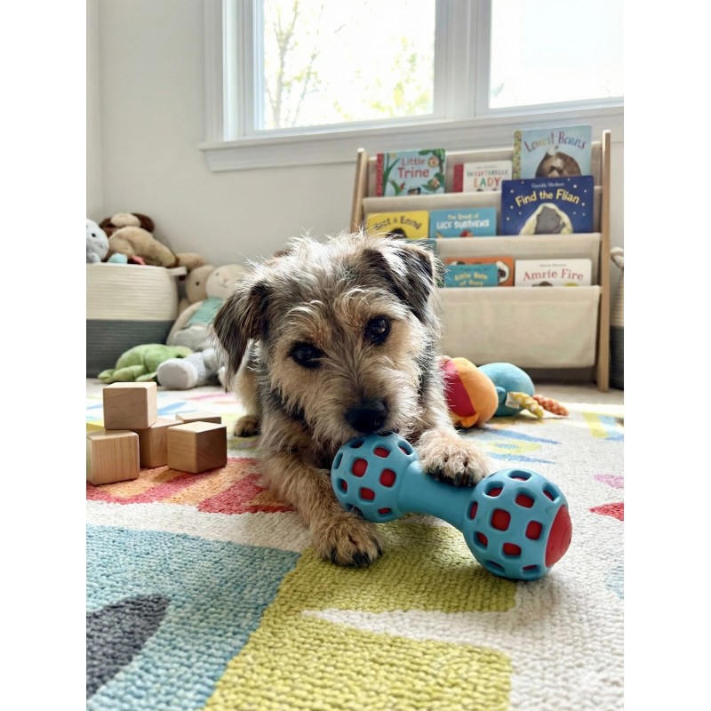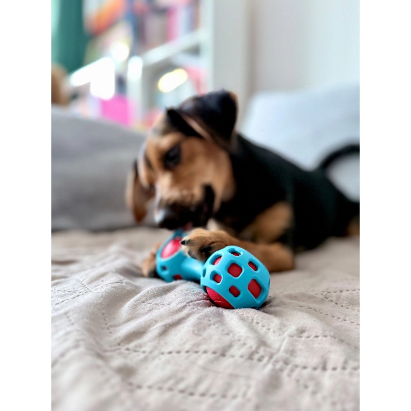 - Kształt hantla – idealny do gryzienia, aportowania i samodzielnej zabawy.