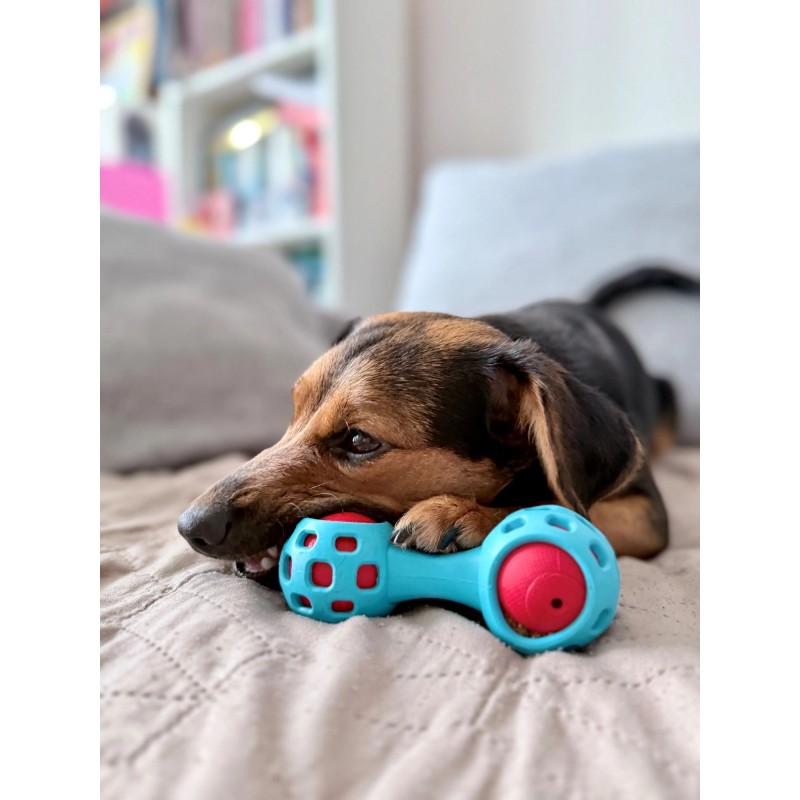 Zabawka ZOLUX gryzak na przysmaki w kształcie hantla 13 cm to funkcjonalna propozycja dla psów, które uwielbiają gryzienie połączone z wyzwaniami umysłowymi. Ergonomiczny kształt hantla ułatwia chwytanie, a możliwość ukrycia smakołyków wewnątrz skutecznie motywuje psa do dłuższej, angażującej zabawy i pobudza naturalny instynkt poszukiwania.